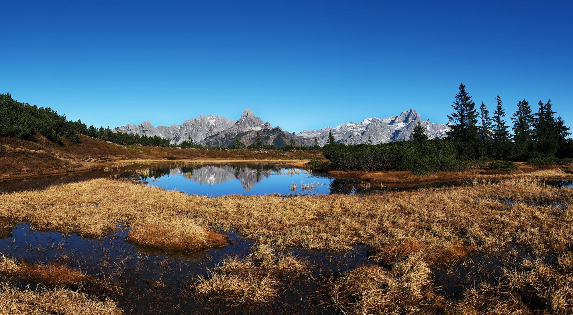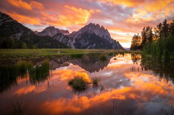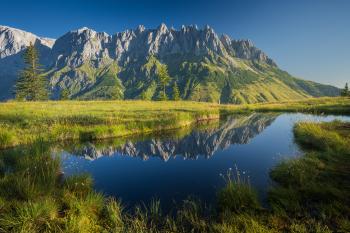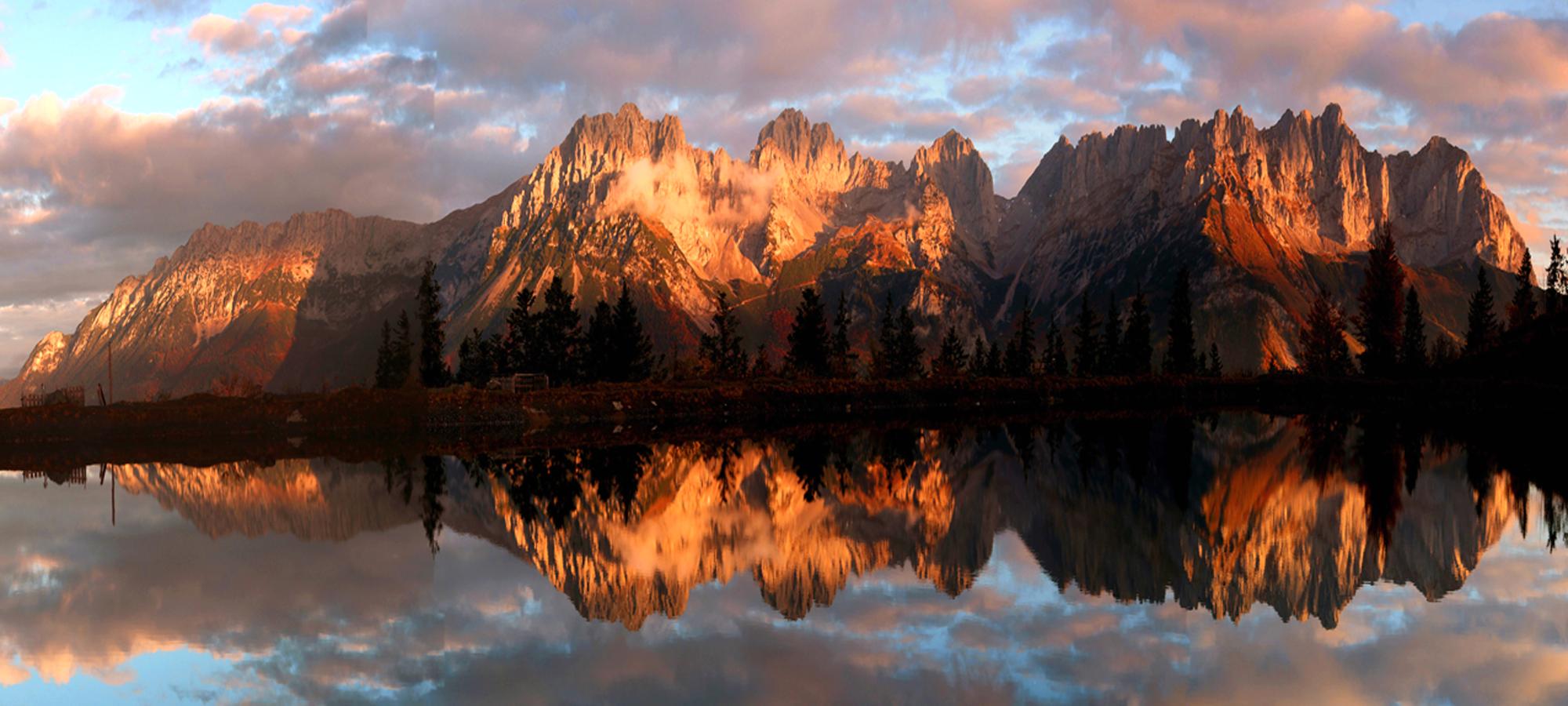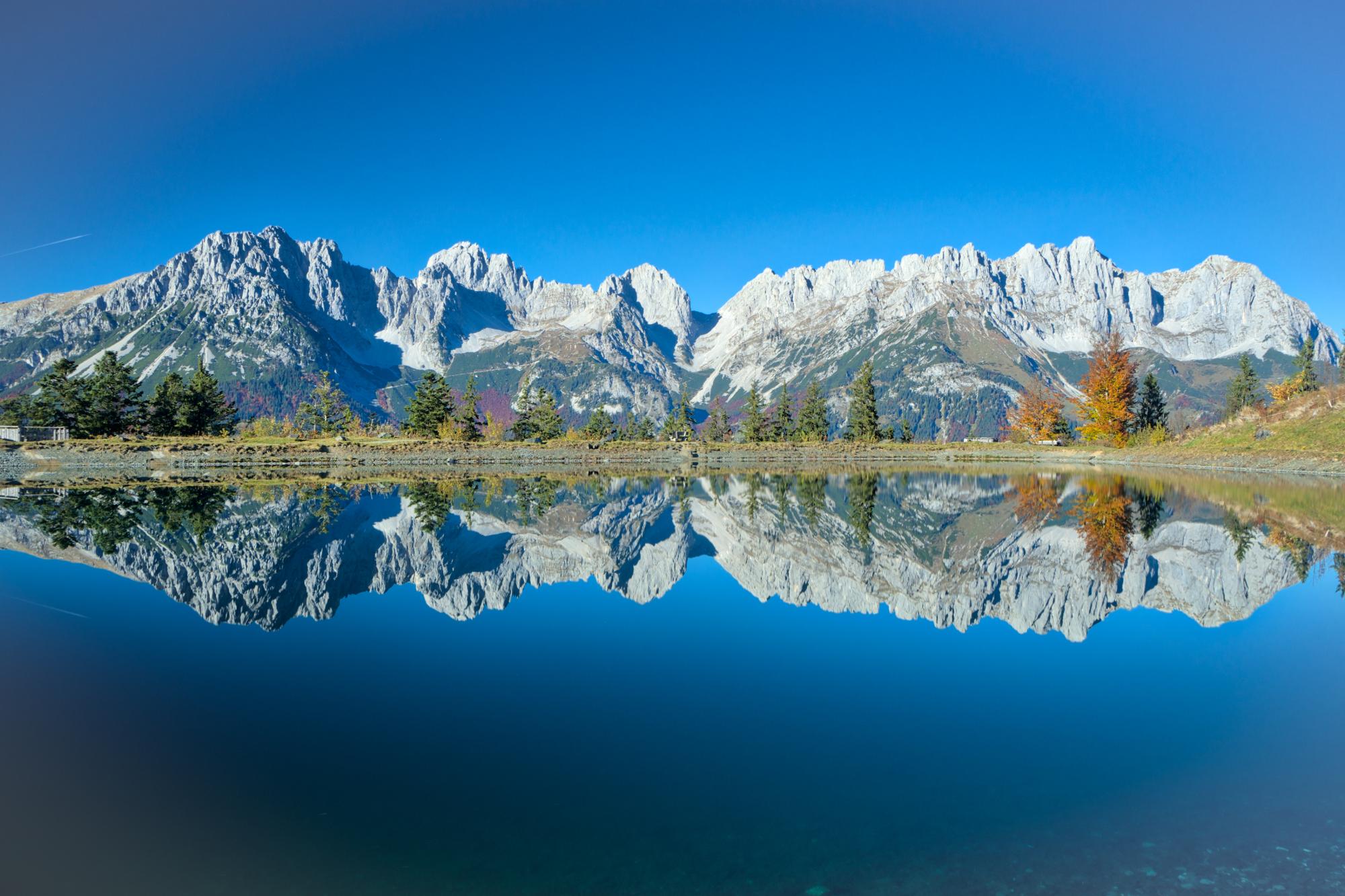 Kaisergebirge spiegelt sich im Astbergsee